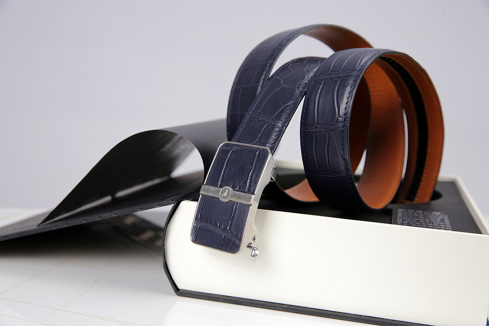Our Nile crocodile belly belt perfectly blends elegance with exquisite craftsmanship. This belt features a fashionable self-locking design, with exquisitely painted edges and gilded details, highlighting unparalleled refinement. Whether it’s a business meeting or a leisure trip, it can easily enhance the taste of your wardrobe and showcase true luxurious charm. For men who pursue outstanding quality and timeless style, it is definitely your must-have choice.